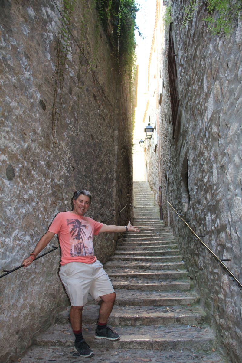 Girona is a walled, medieval city that can trace it’s history back to Roman times. The ‘old town’ is protected on one side by the River Onya and developed up the adjoining hill from the river and was enclosed by a massive protective wall. As such the ‘old town’ is a maze of narrow streets that make for excellent exploring. We made our way through the shaded streets to the Cathedral and Bishops Palace (which is now a historical museum) and wandered around before going to Independence square for a bite to eat. As we still had the return ride (in 34 degree heat) we decided we would come back (by car) later in the week to take a good look around this nice town.
