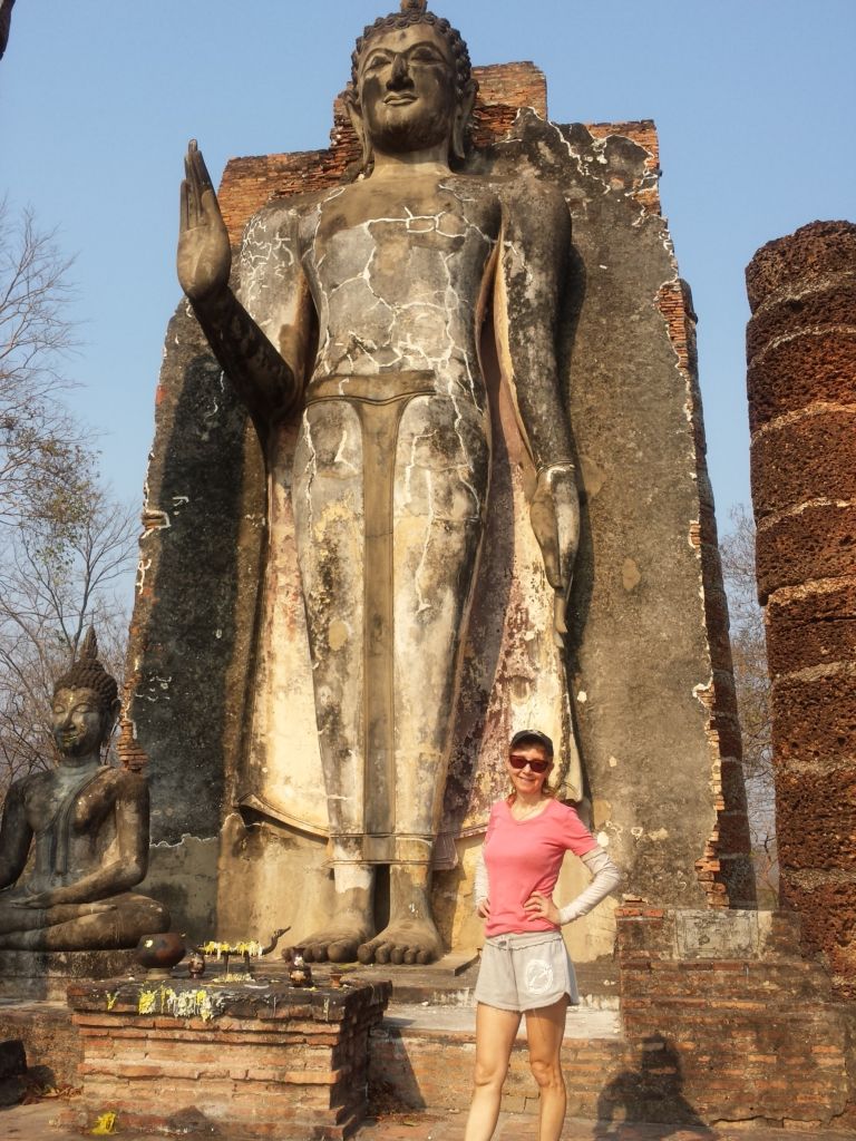 We left Chiang Mai in early March and took an interesting bus journey to Sukhothai. This is a fabulous set of ancient ruins about half way between Chiang Mai and Bangkok. We had visited there very briefly on an organised tour of Thailand a few years ago but didn’t get enough time to explore them fully. This time we had an entire day so left ‘new’ Sukhothai early, hired a couple of bicycles (surprise!!) and had a wonderful day exploring the area in much more detail. As mentioned previously, this was the 13th century capital of Thailand and the architecture, temples and ruins are fascinating. It is well worth a visit if you are coming to Thailand.