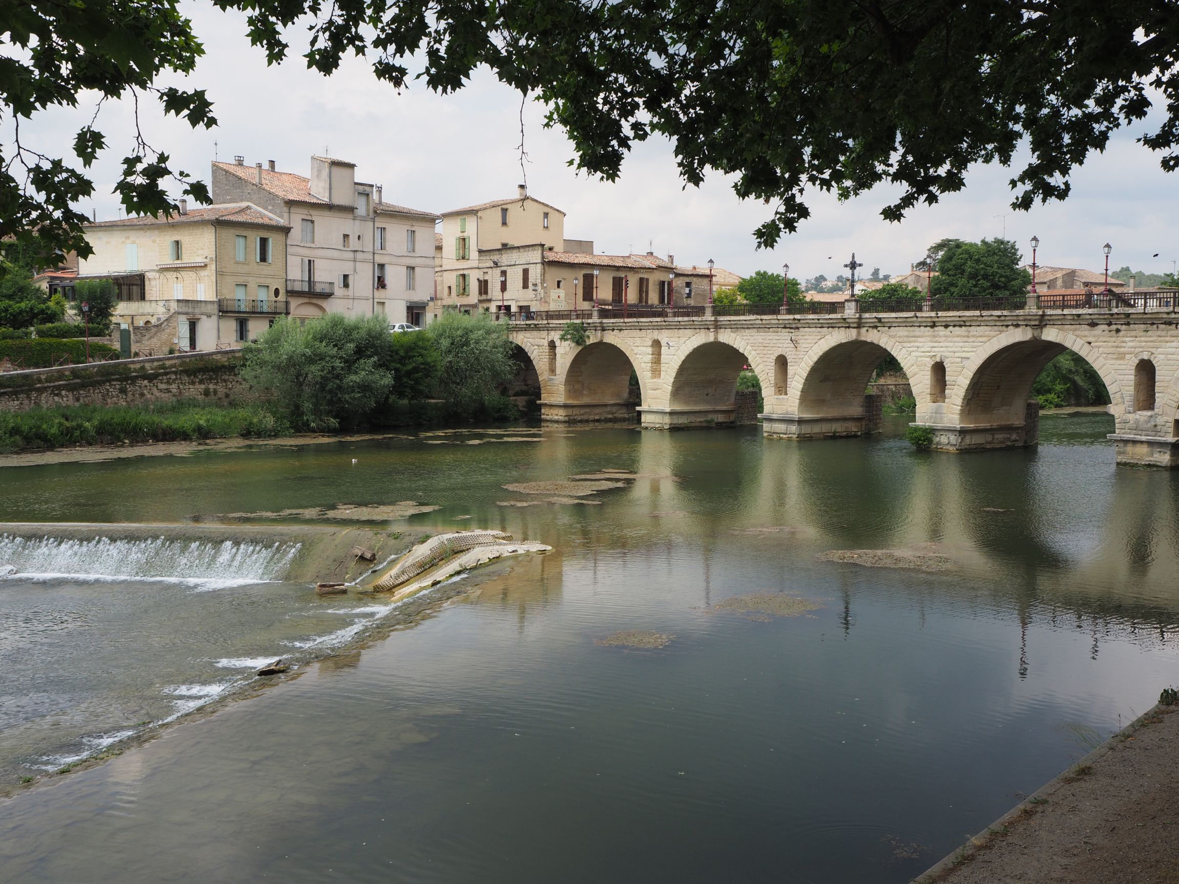 Sommières is a very pretty town, with Roman origins, on the banks of the Vidourle River. The historic centre is now officially designated as a ‘secteur sauvegardé’ – that is, it is protected from further development to ensure it retains its medieval character. It is one of the few rare European towns whose bridge was/is built on (others being in Bath, UK and the Ponte Vecchio in Florence, Italy). Only seven of the original twenty-one arches are still visible with the others now ‘underneath’ the main street Rue Marx Dormoy.