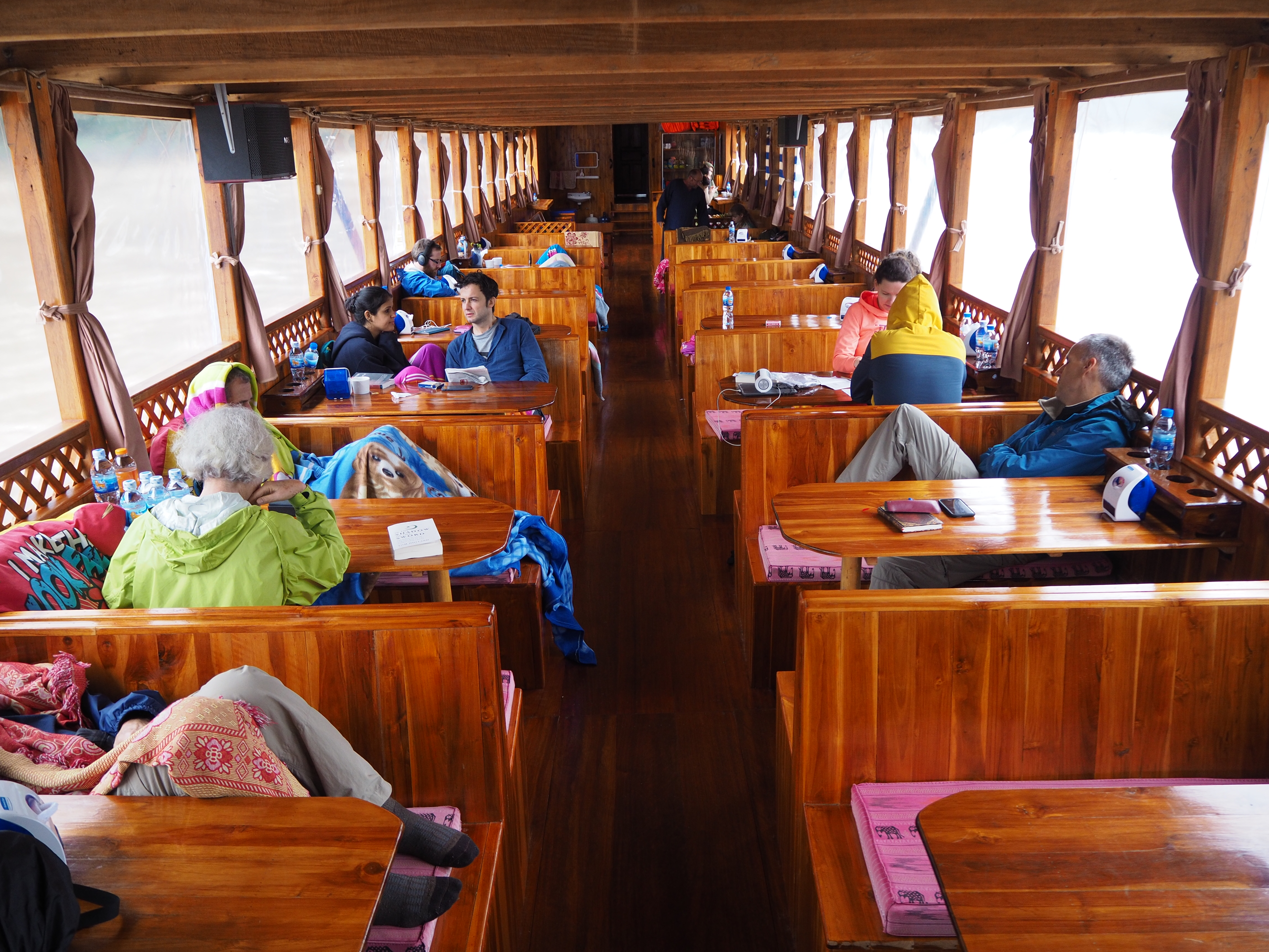 OLYMPUS DIGITAL CAMERA January 24, 2018 Return to: Chiang Mai to Luang Prabang by bus, slow boat and planeFull resolution (4608 × 3456) Image navigation Previous Image Next Image Passengers relaxing on day two (it was a little damp and cool)