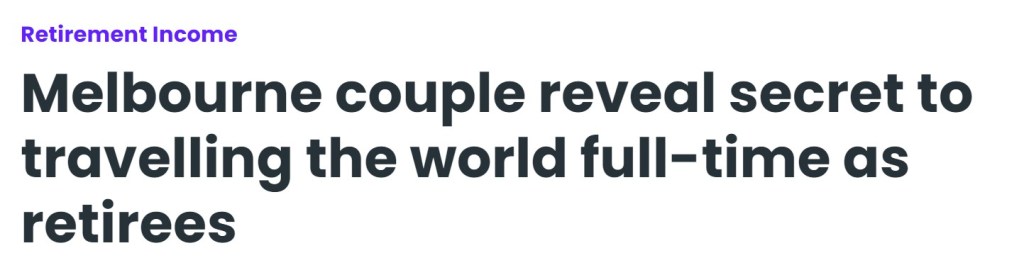 We were included with a number of other retirees in the “Grey World Nomads – Early Retirement” Blog